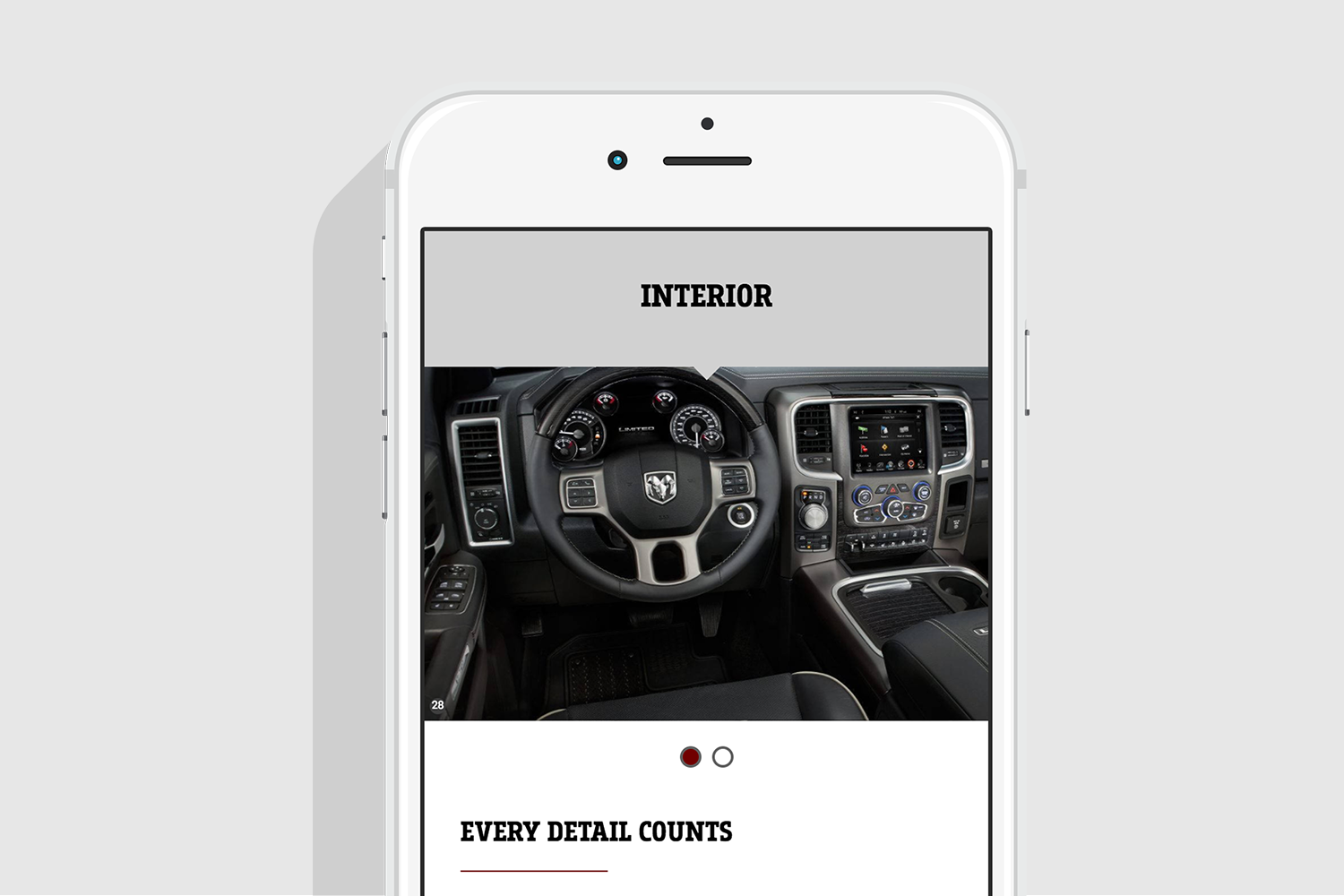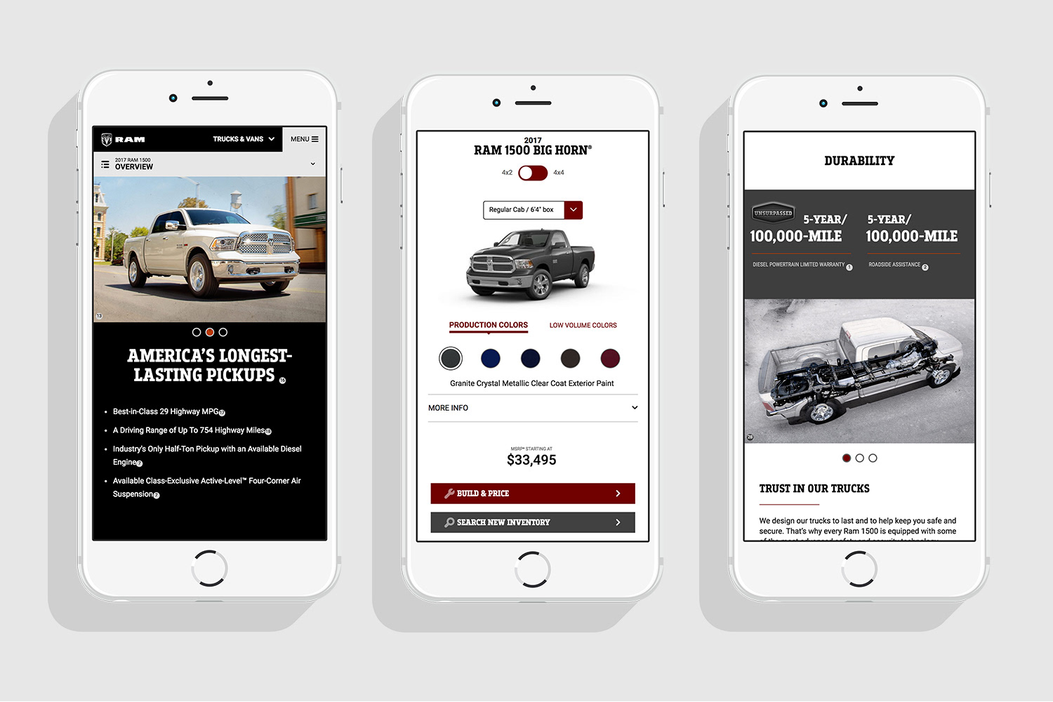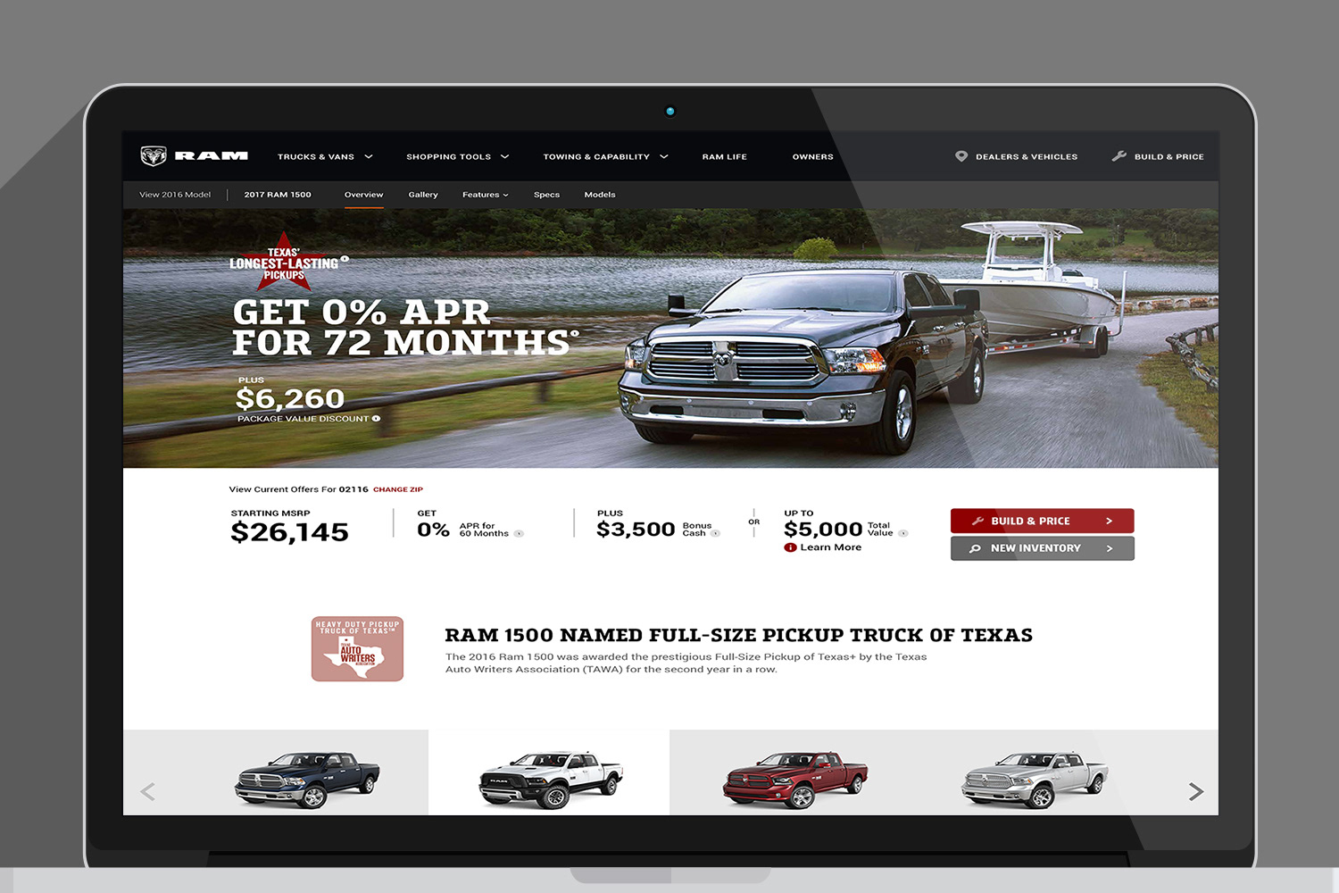 This is the 2017 Model Year site update. We created new layout design for all of the Ram Truck models, updated the new user experience for customers to purchase a new Ram Truck online.